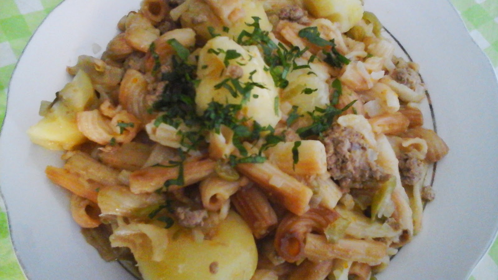 En un sarten tostar con un poco de aceite los fideos hasta que doren ,  pelar las papas cortar en dos y  cocinar los fideos y las papas en abundante agua y sal moderado ya que los fideos consumen liquido al cocinarse y te puede quedar salado, mientras tanto picar la cebolla en cubos pequeños y sofreirlos junto a las arvejas ,ajo ,pimienta , ají y luego añadir esta preparación a la olla de fideo y papas antes que estas se cocinen y rebolver poco a poco  sin quebrar los fideos cuando ya este todo cocinado