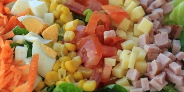 Blanquear la lechuga suiza de de 1 a 4 min (tenerlo en agua) es reposar.Picar los huevos duros en pedasos medianos lo mismo el tomate y las lonjas de carnes frias, agregar los champiñones cortados en 2, aderezar con un poco de mayonesa, pimentar al gusto sal y vinagre al gusto.