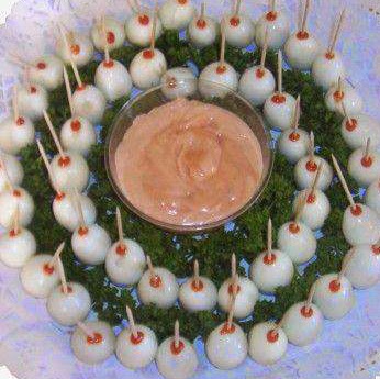 Coloca los huevitos en una olla y cúbrelos con agua fría, pon a cocinar a fuego, déjalo hervir por 5 minutos y luego retíralo, dejalo reposar por un lapso de 7 minutos y escurre el agua dejándolo enfriar, puedes ayudarte colocando abundante agua fría sobre los huevitos. Descascaralos cuidadosamente, que te queden enteros, coloca sal y pimienta a gust, introduce mondadientes en cada uno y colócalos en bandeja, sirve con salsa golf y si deseas con papas fritas .
