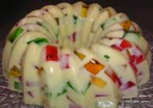 Ahora puedes mezclar la gelatina que preparaste y las que cortaste en los moldes de tu elección ya sean grandes moldes  y moldes individuales puedes darles las formas que tu quieras y llevalas al refrigerador hasta que esten firmes.