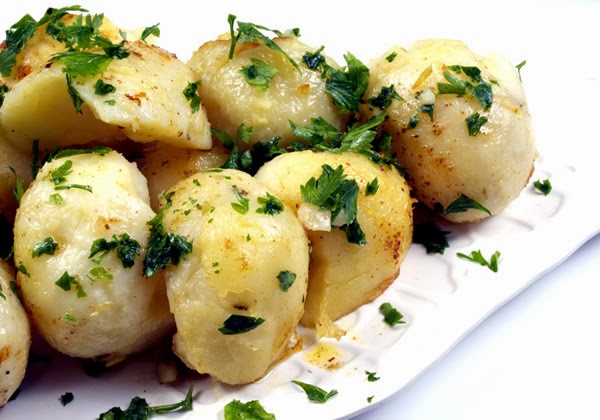 Pique el perejil , antes que las papas revienten escurra bien el agua, coloque a fuego un sarten y una cuchara de aceite de oliva , mantequilla y añada las papas salteandolas tambien puede ayudarse con una cuchara de palo pero con mucho cuidado sin quebrar las papas exparcir el perejil cubriendo con ello las papas y si desea agalas dorar un poco.