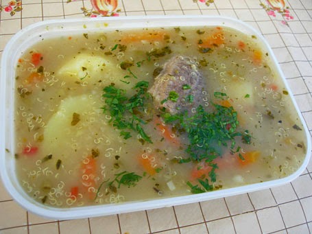 En una olla adecuada se deposita 15 tazas de agua, la carne limpia y cortadas en presas adecuadas y una colilla de cebolla verde, a los 5 minutos de ebullición se pone la quinua lavada separadamente , se limpian y se pican las cebollas, locoto, tomate, ajo y 2 ramitas de perejil friendoce en el aceite  con mas los condimentos molidos agregando el condimento las zanahorias limpias 2 picadas en forma de palitos y la otra raspada con mas las arvejas y las habas limpia y añada esta preparacion a la sopa, una vez reventada la quinua se agregan las papas limpias y partidas en tajadas luego añada sal y orégano bien estrujado a la sopa  dejelo hasta que las papas esten bien cocinadas luego retire del fuego, sirva decorado con perejil picado.